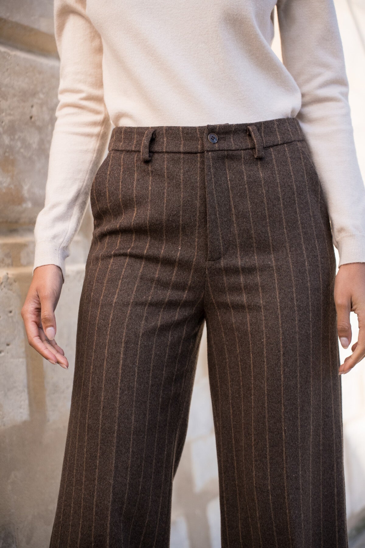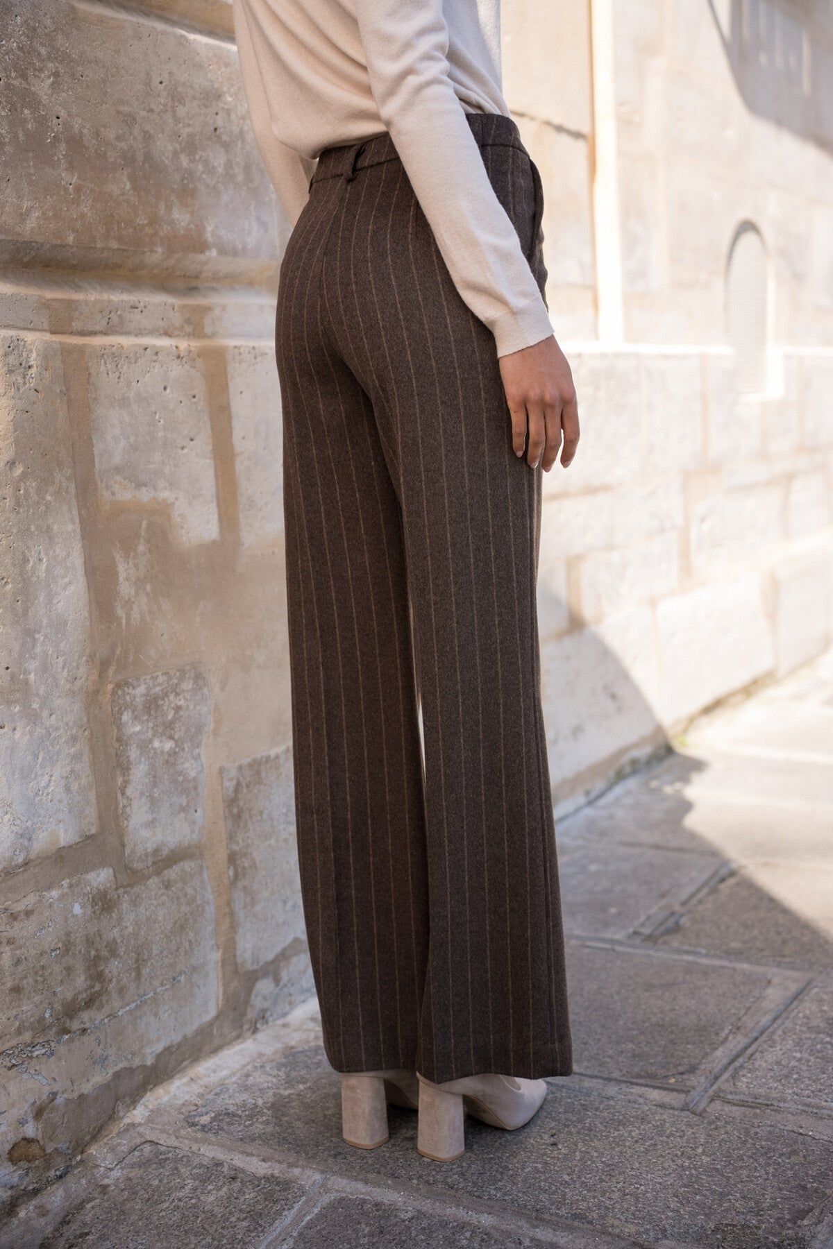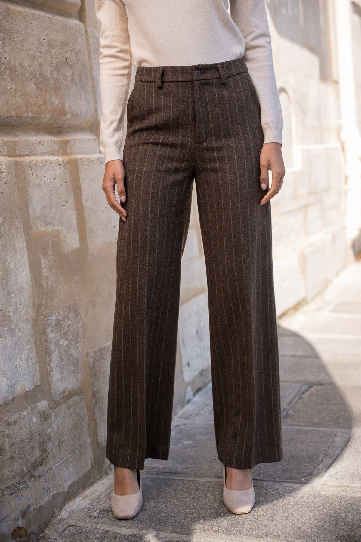 Klasikinės rudos vilnos mišinio kelnės su juostelėmis - 36