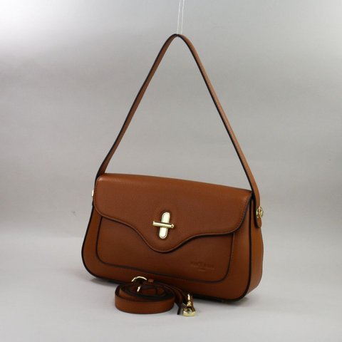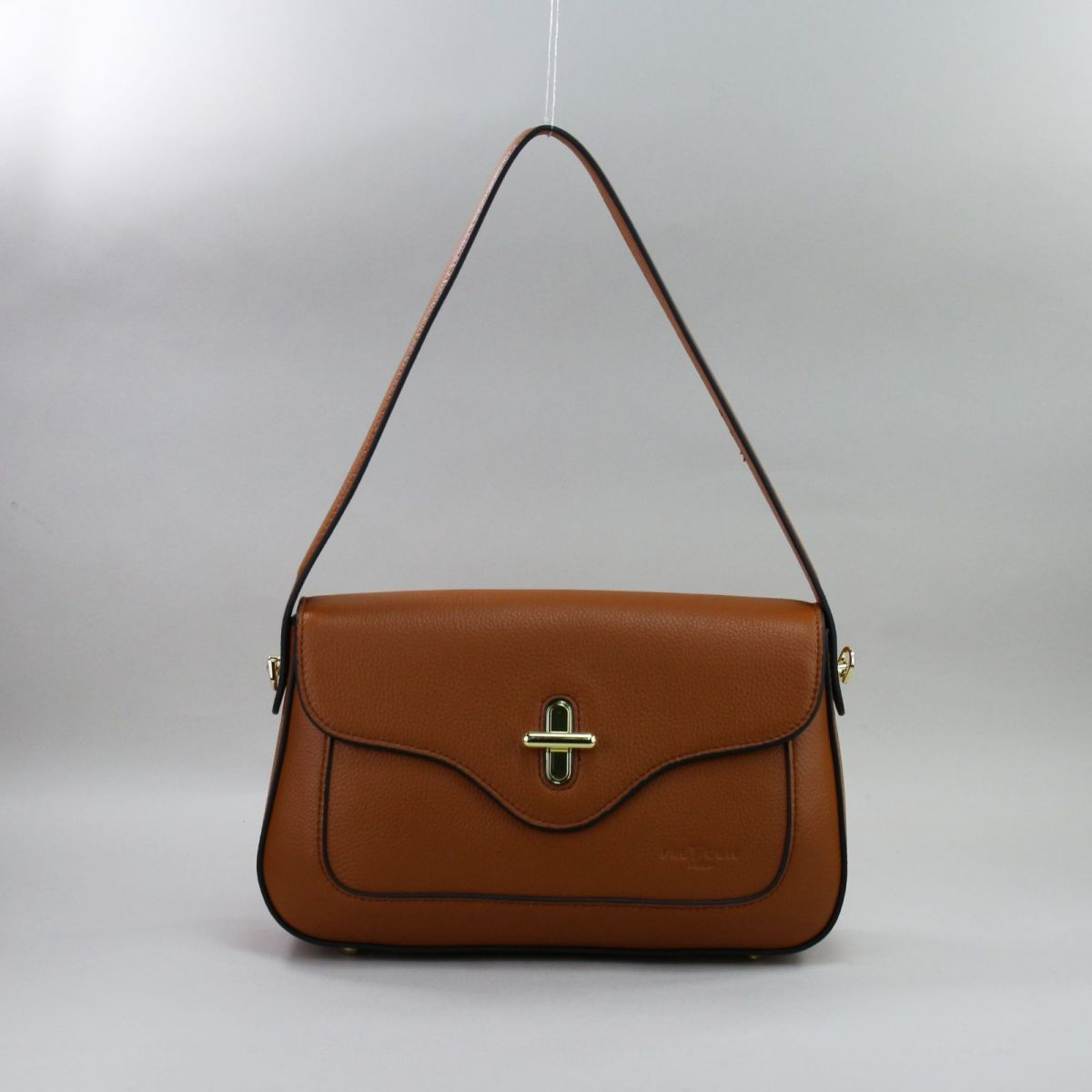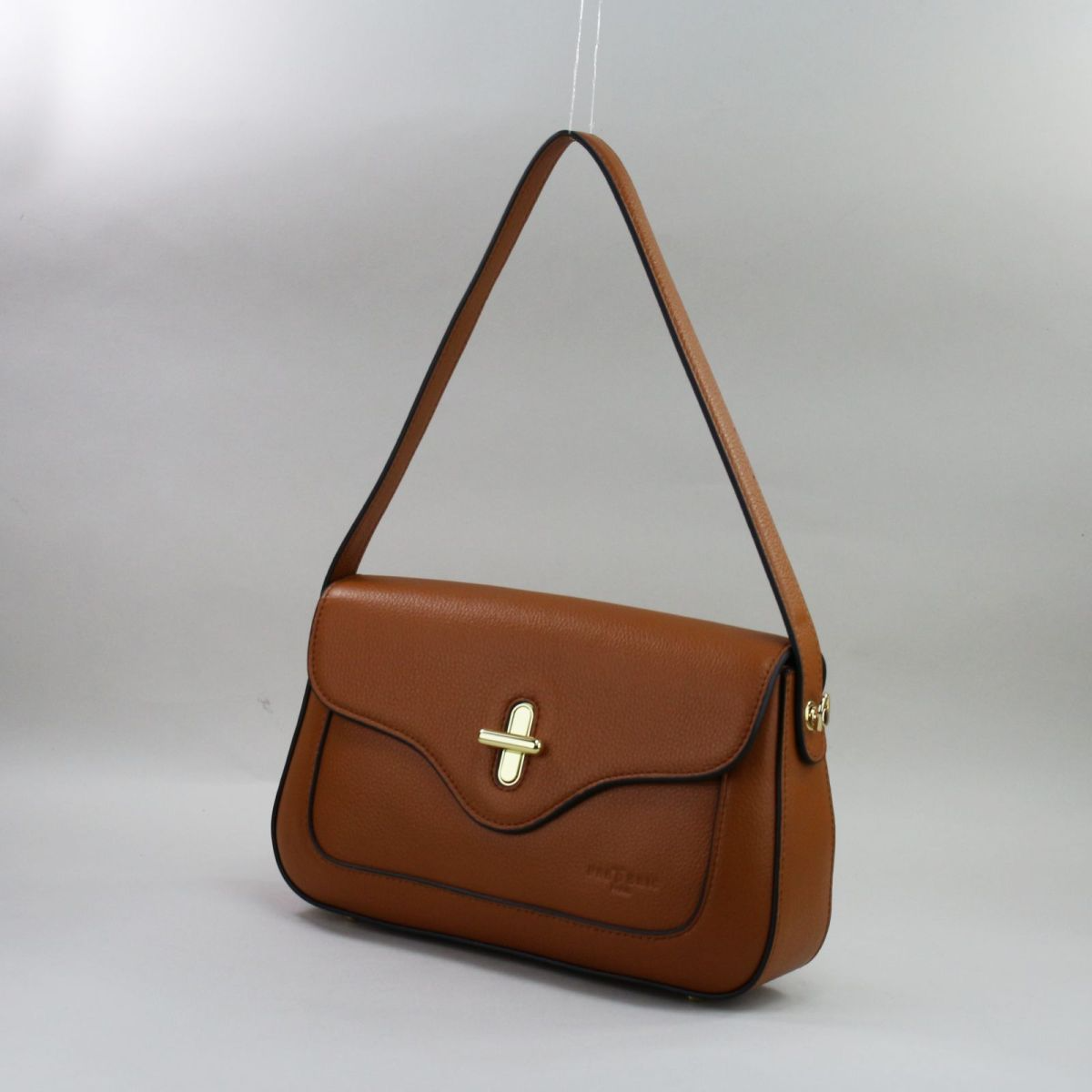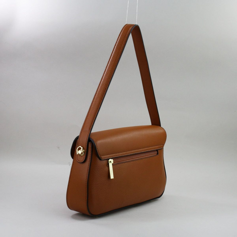 Camel spalvos natūralios odos kompaktiška rankinė su auksinės spalvos furnitūra Išpardavimas