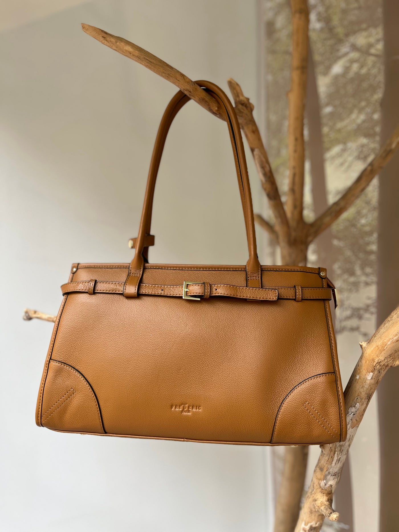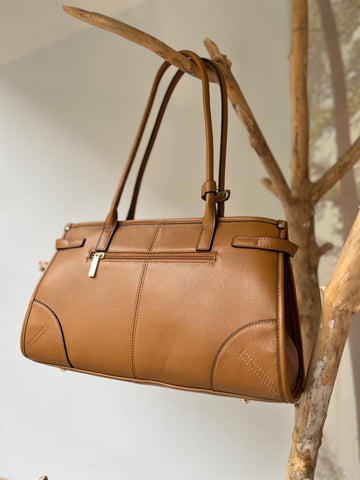 Elegantiška šviesiai ruda odinė rankinė moterims