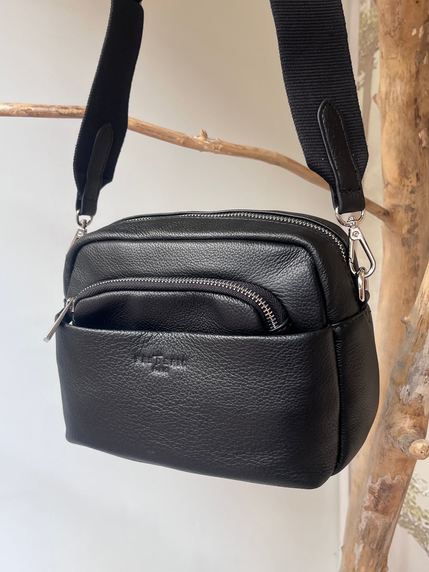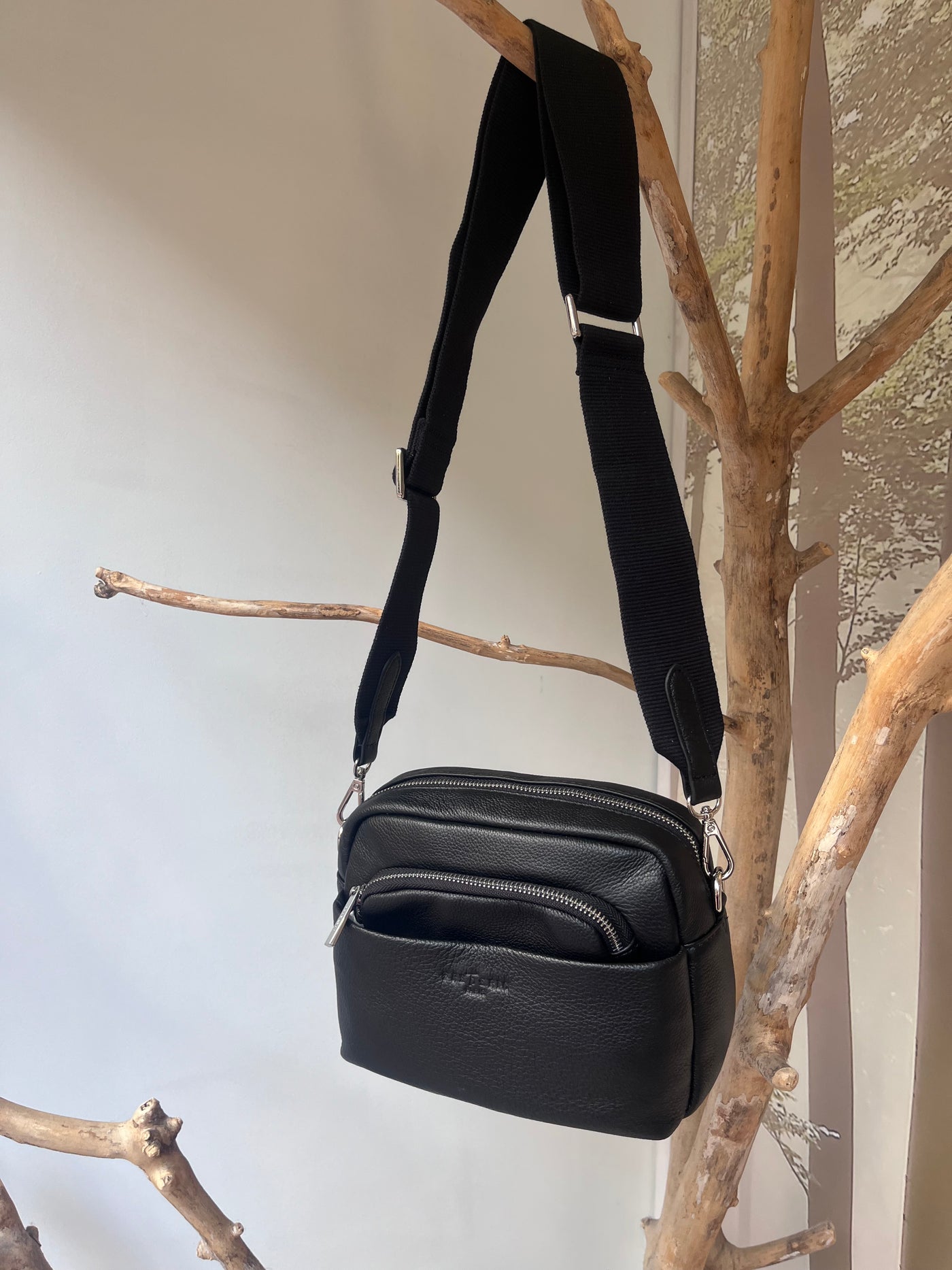 Juoda natūralios odos rankinė su dviem skyriais Išpardavimas
