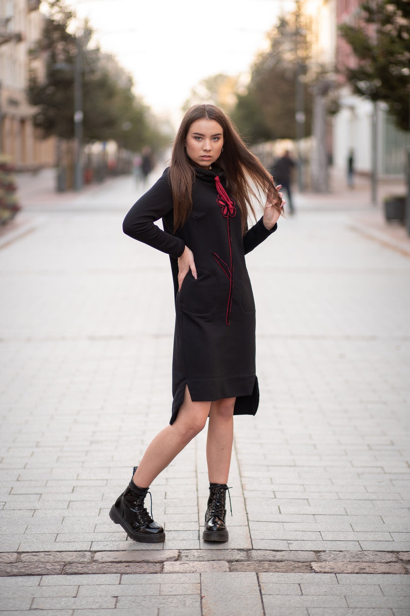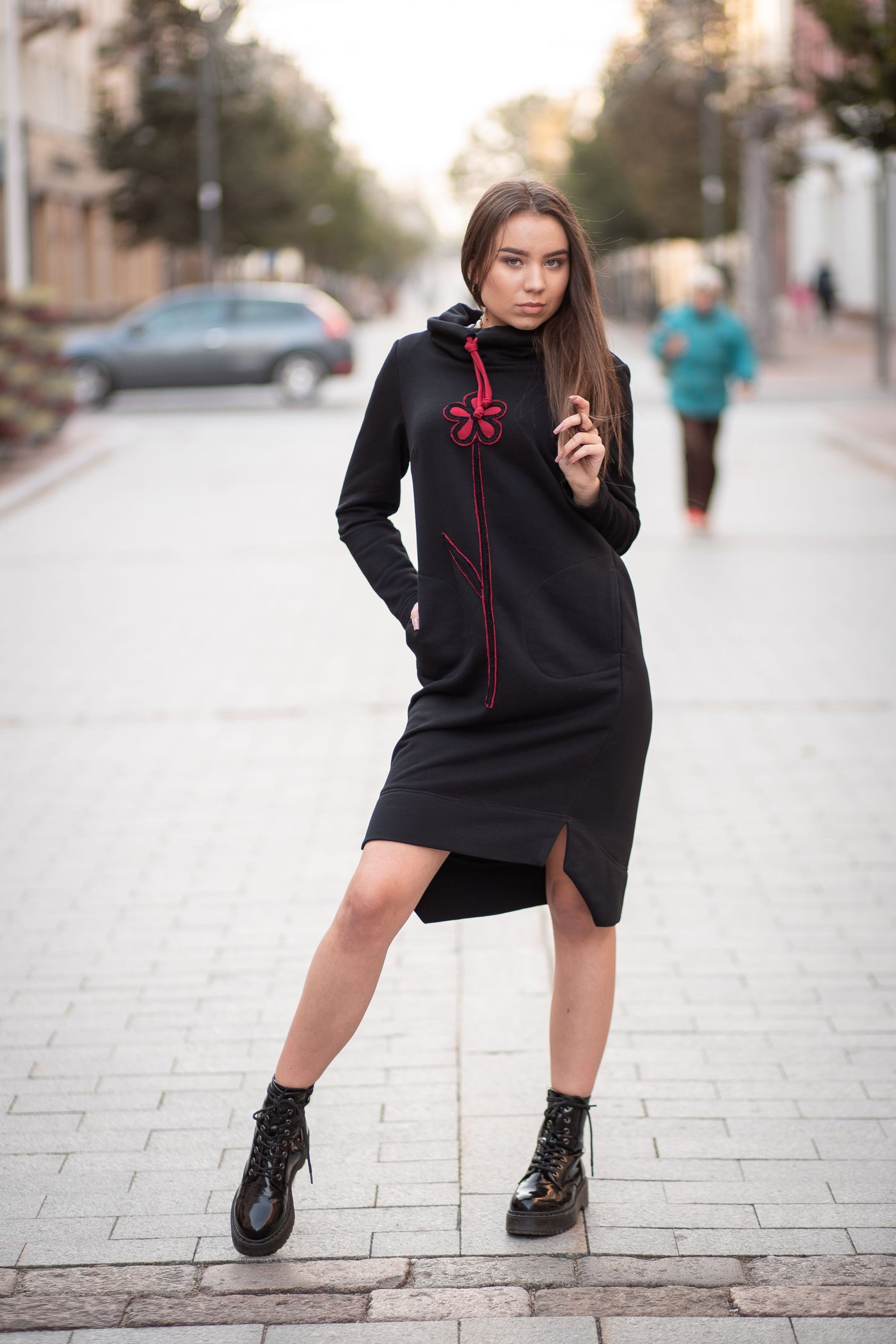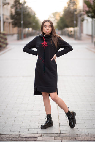 Trikotažinė suknelė su raudona gėle Išpardavimas