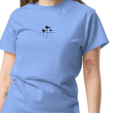- Priekinę dalį puošia trys siuvinėti paukšteliai, suteikiantys subtilaus žavesio.
