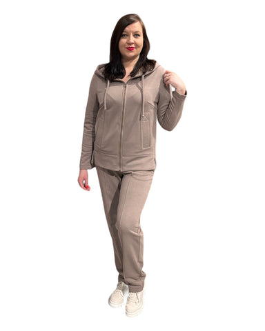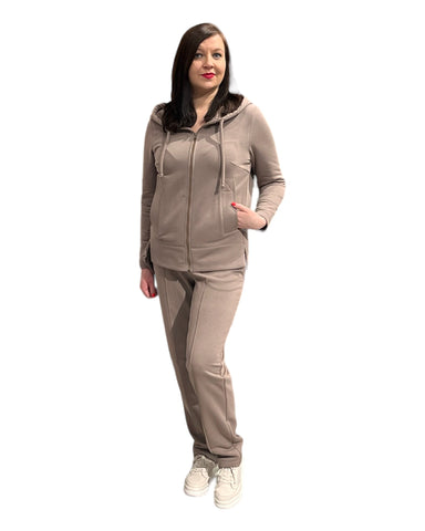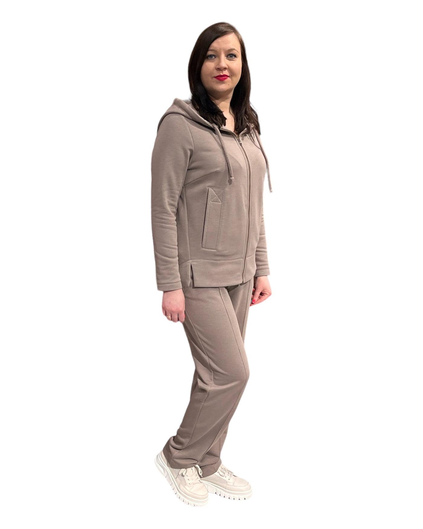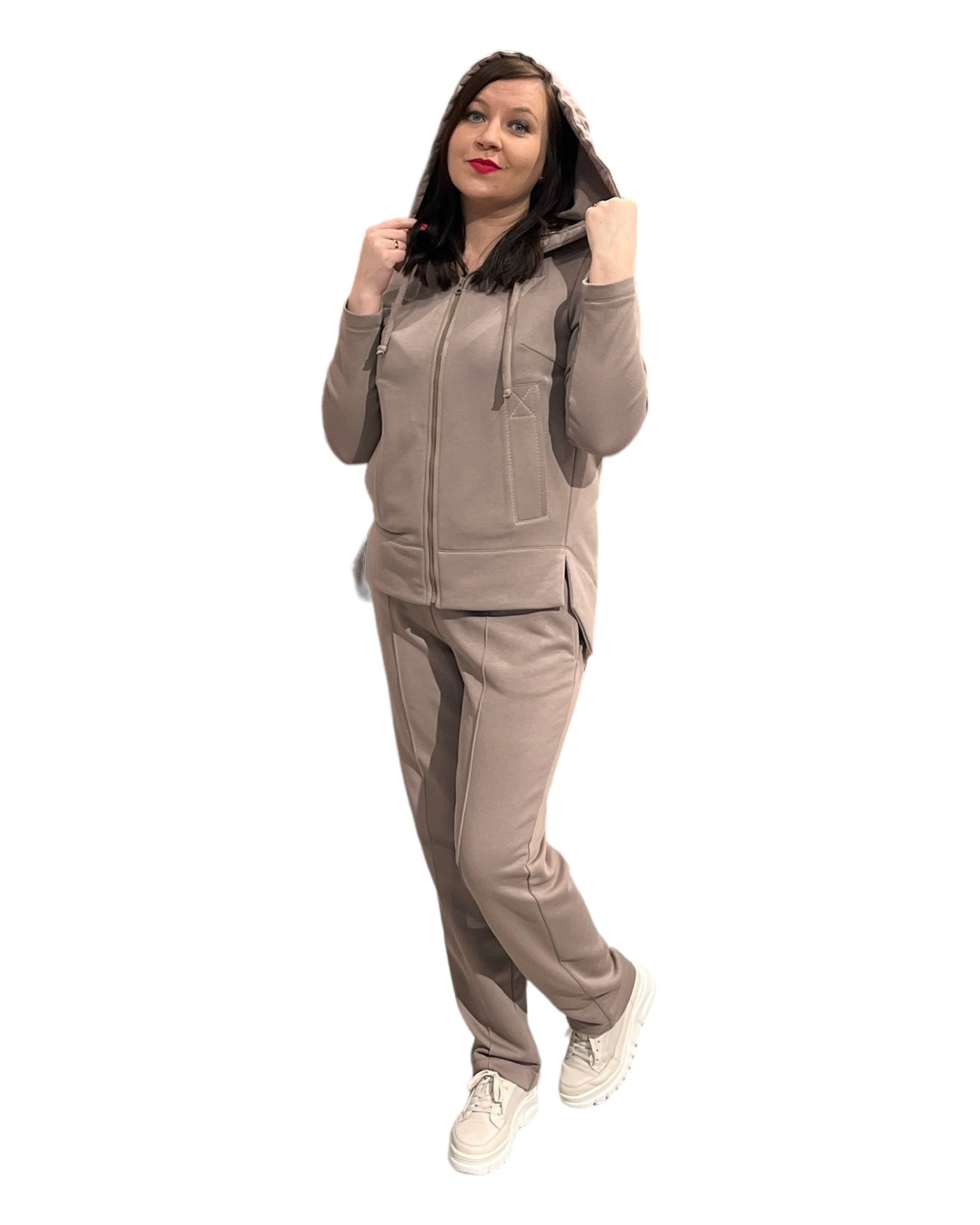 Laisvalaikio kostiumas moterims – patogus, trikotažinis, su gobtuvu ir užtrauktuku - 38 / Kapučino