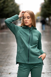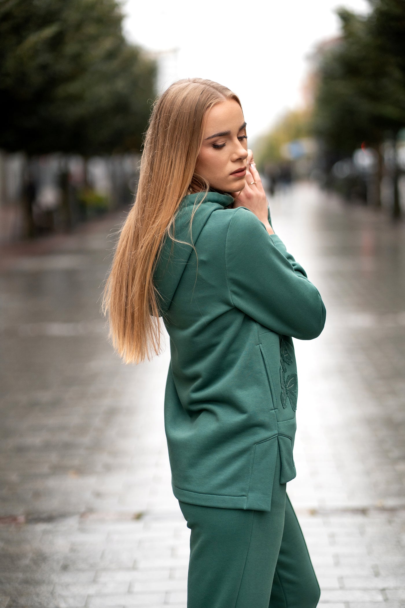 Laisvalaikio kostiumas su drugeliais – patogus ir stilingas - 36 / Antikinė žalia