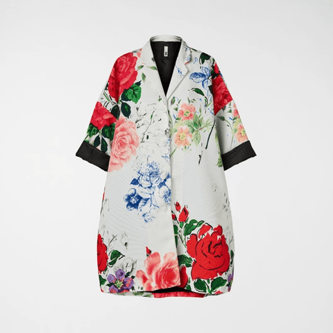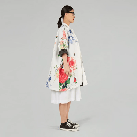 Kimono stiliaus paltukas – baltas su spalvotomis gėlėmis Išpardavimas