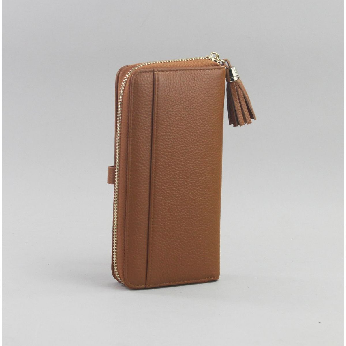 Karamelinės spalvos natūralios odos piniginė, talpi ir elegantiška Išpardavimas