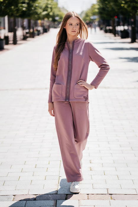 Moteriškas laisvalaikio kostiumas, patogus kostiumėlis su kišenėmis - 36 / Pelenų rožė
