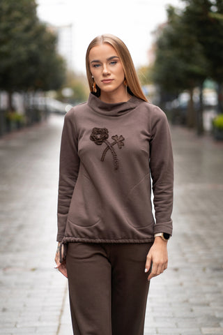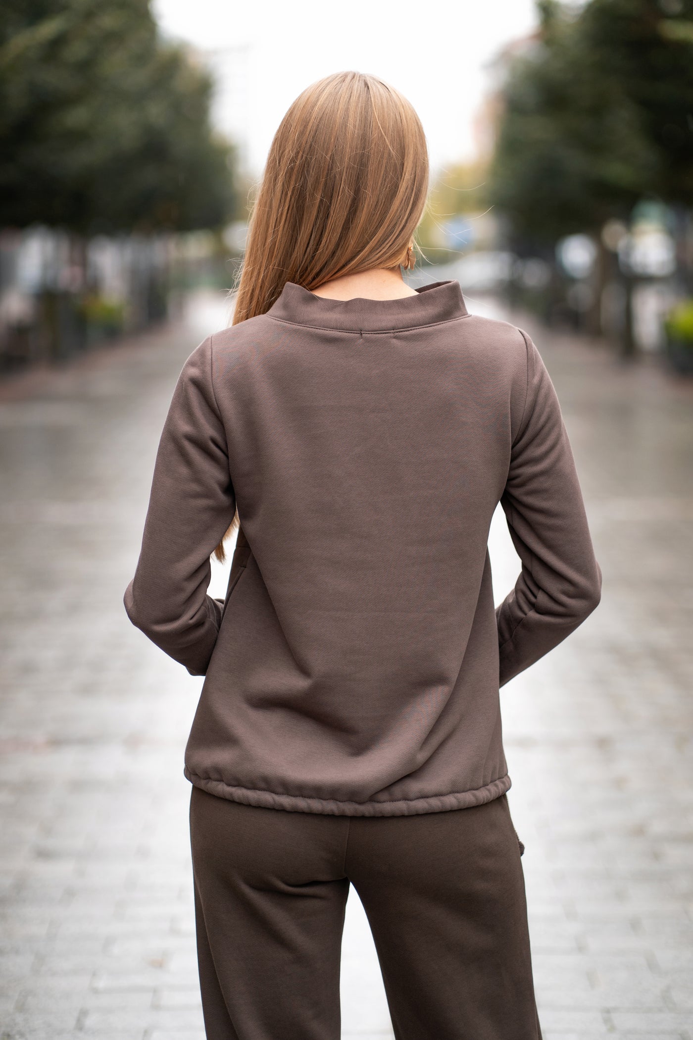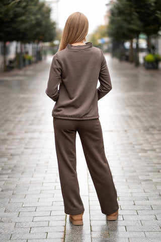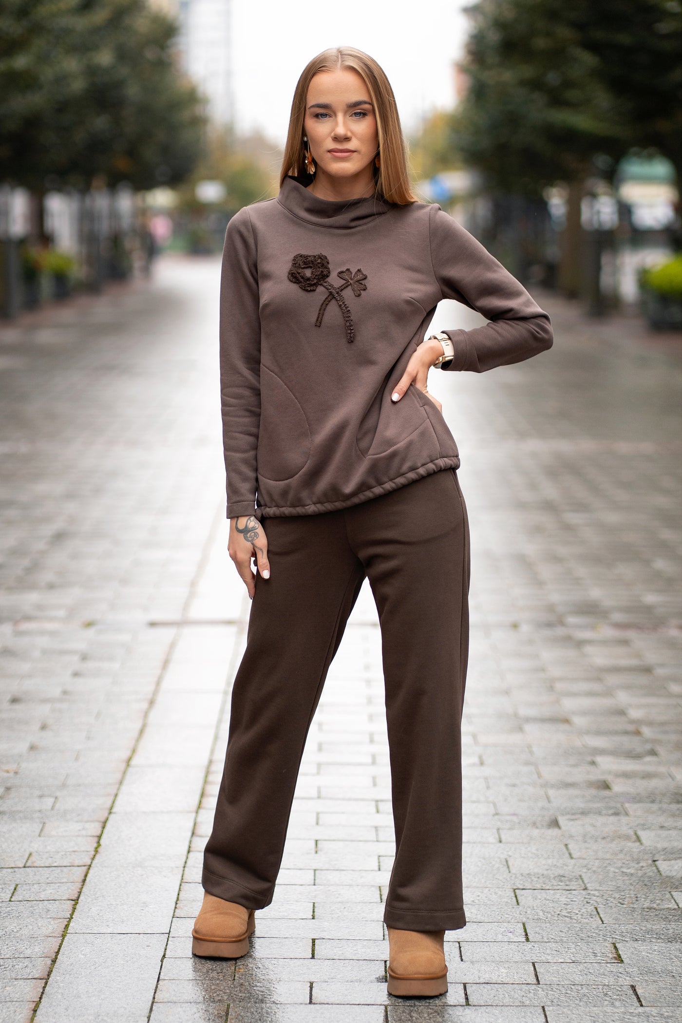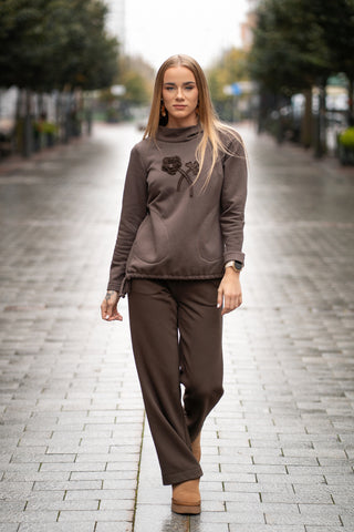 Šis rudos spalvos trikotažinis laisvalaikio kostiumėlis yra tikras universalas 🌿