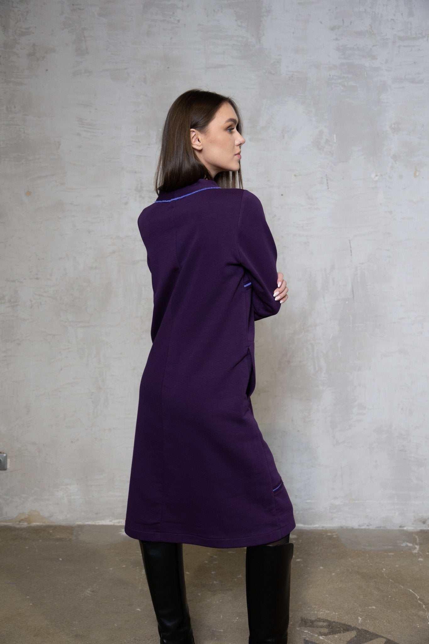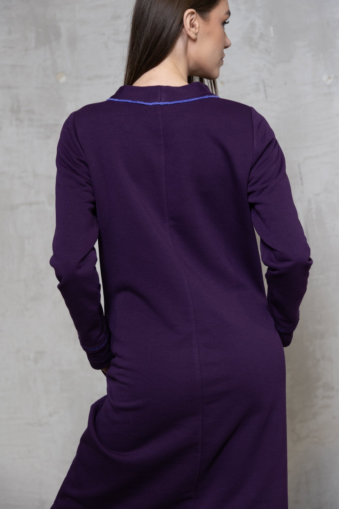 Baklažano spalvos trikotažinė suknelė su ilgomis rankovėmis - 36