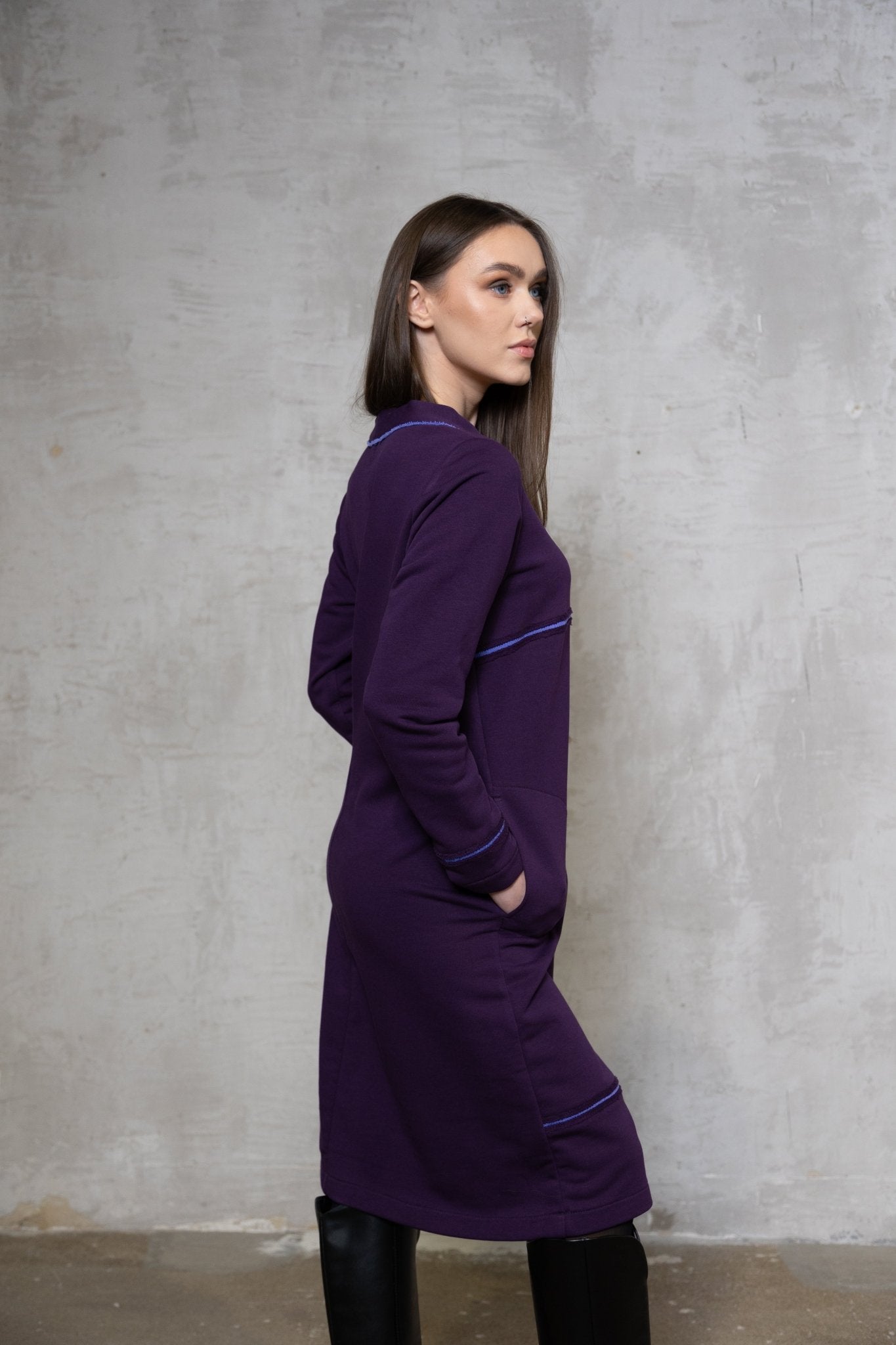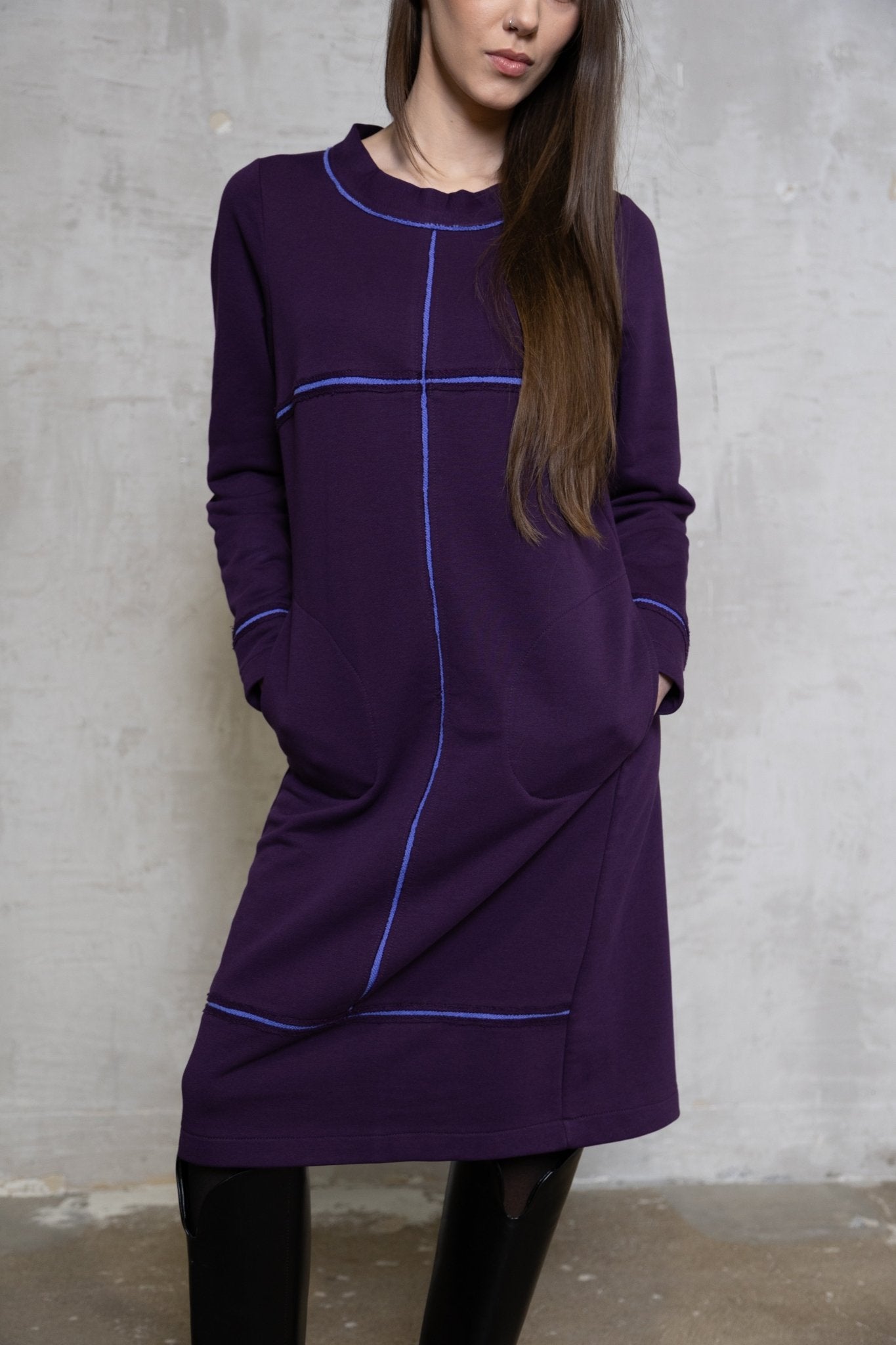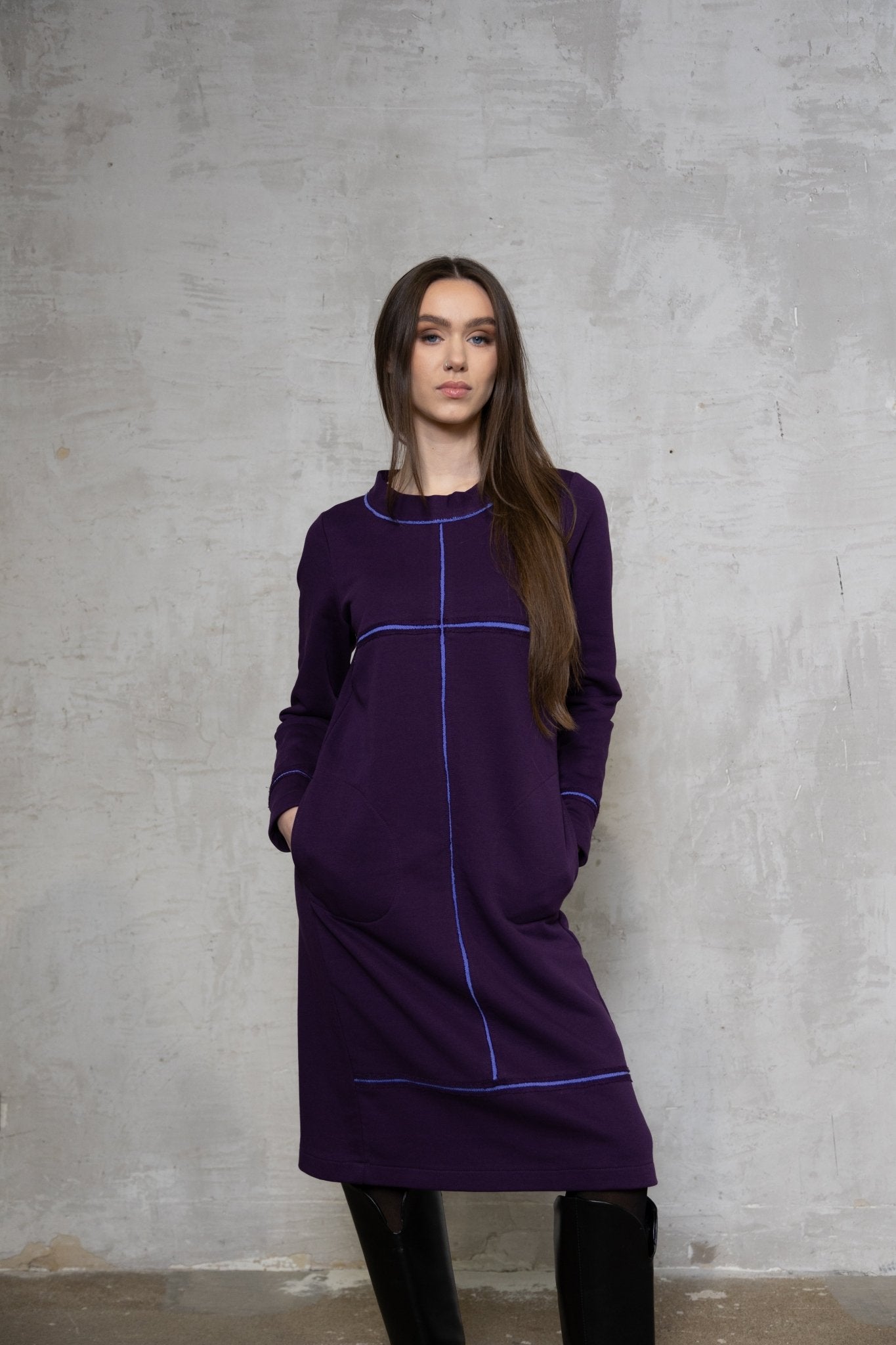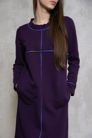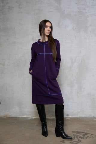 Baklažano spalvos trikotažinė suknelė su ilgomis rankovėmis Išpardavimas