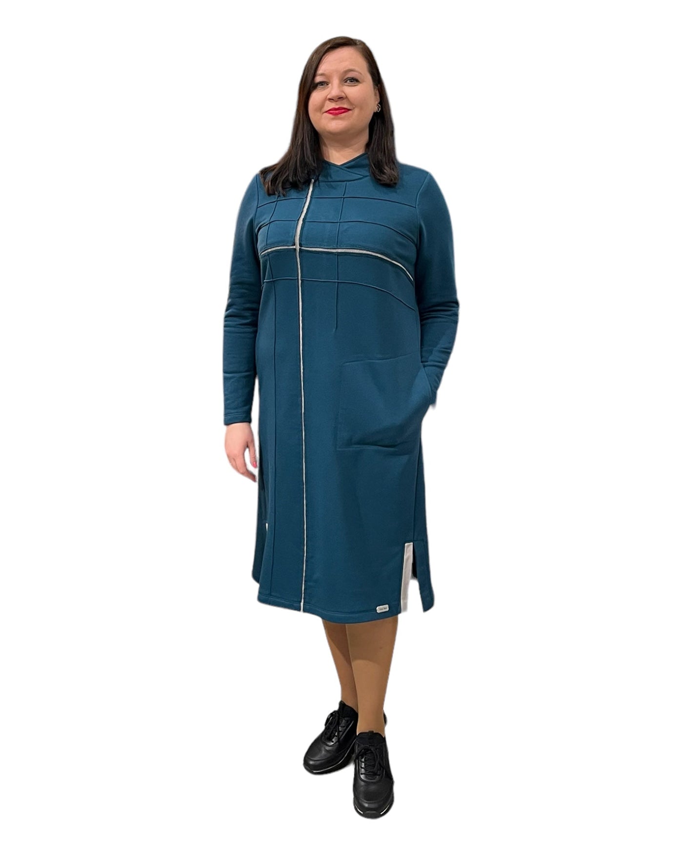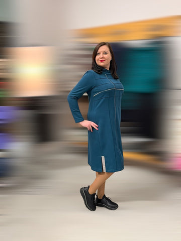 Trikotažinė jūros bangos spalvos suknelė su kišenėmis, patogi kasdienai - 36