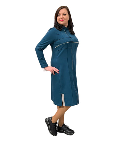 Trikotažinė jūros bangos spalvos suknelė su kišenėmis, patogi kasdienai Išpardavimas