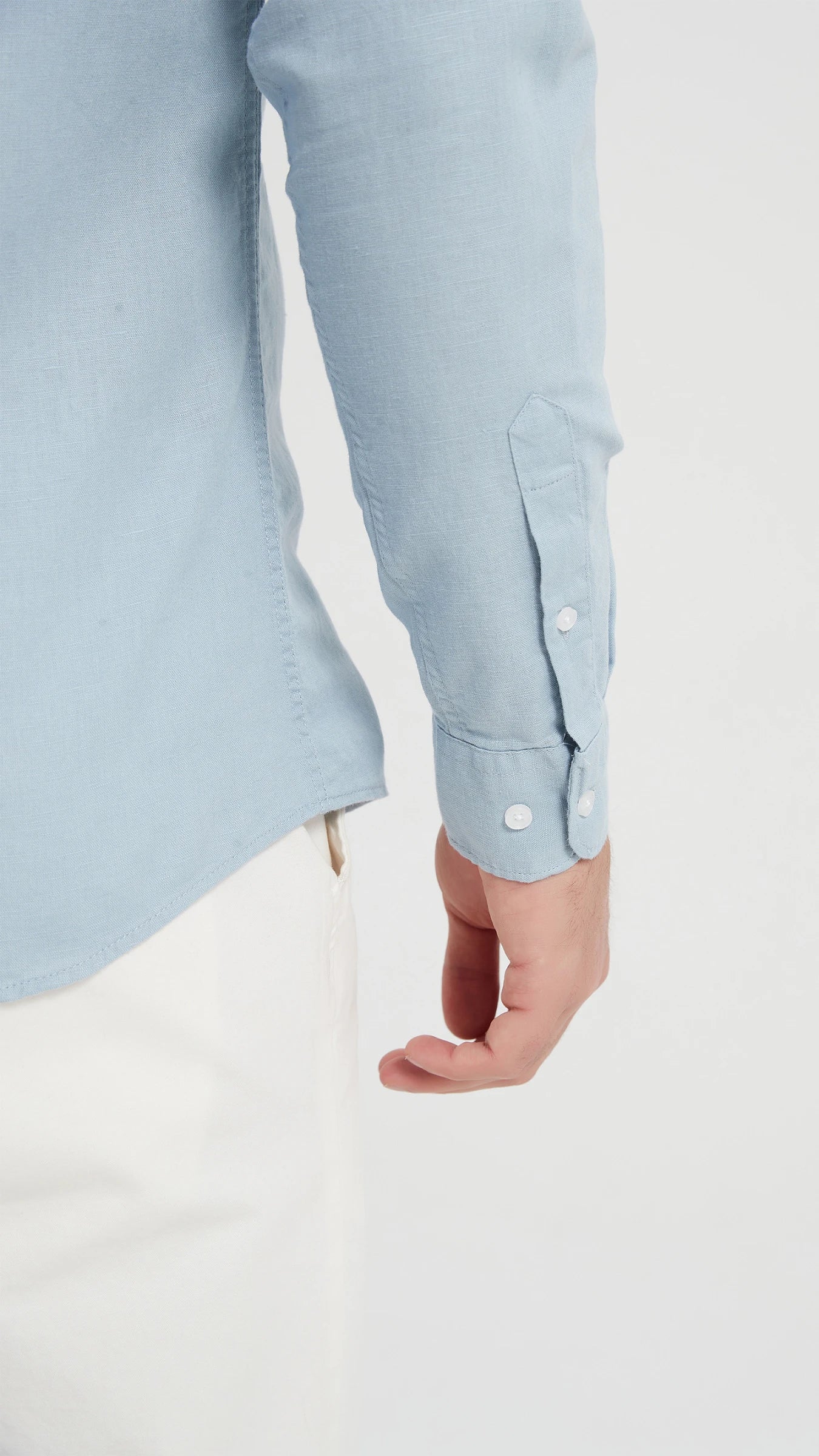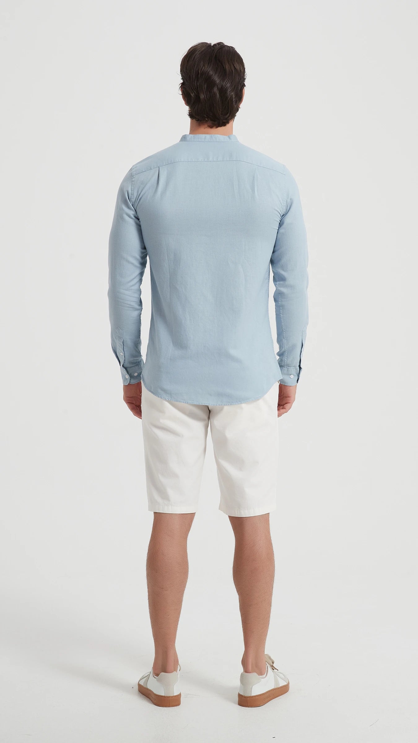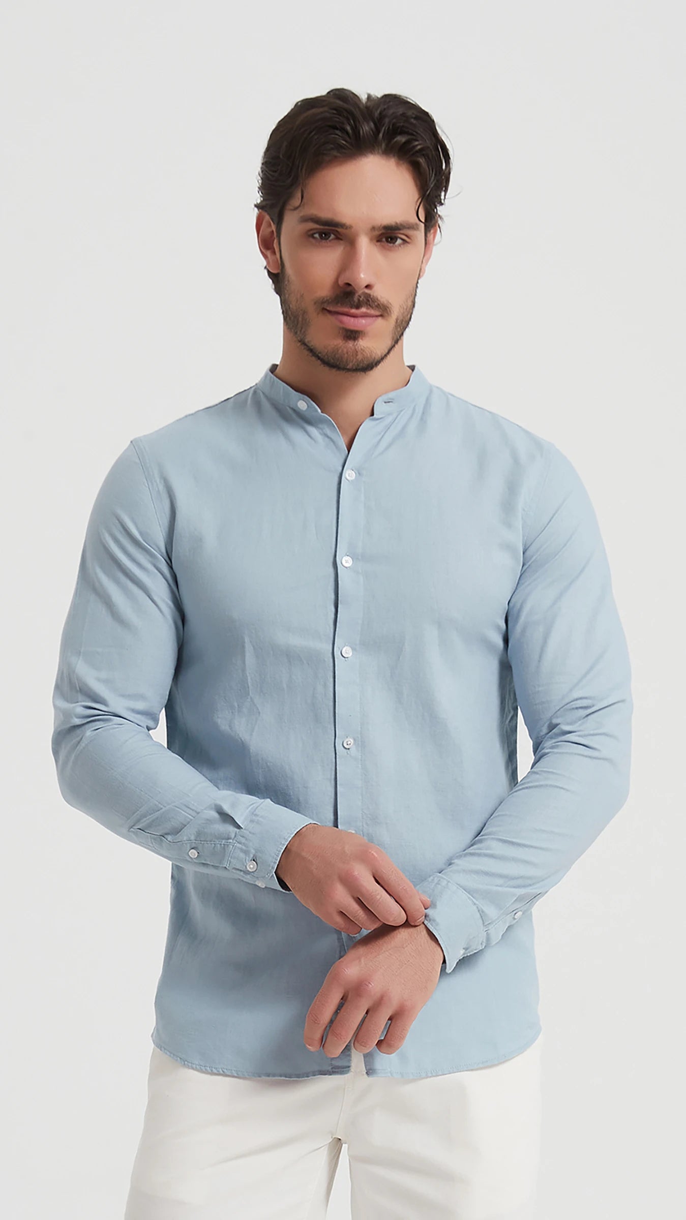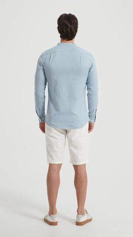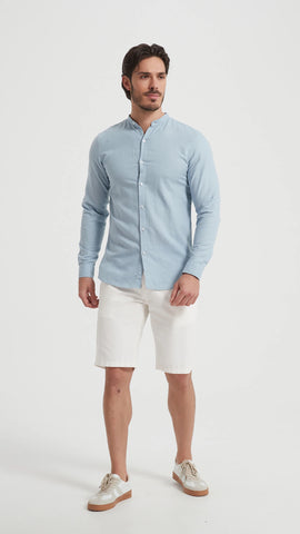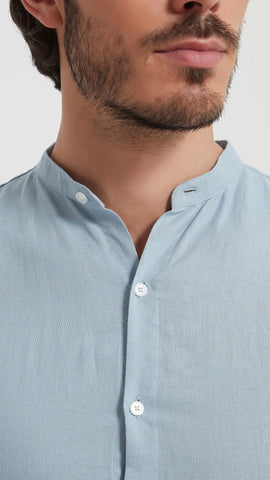 Šie vyriški šviesiai mėlyni marškiniai be apykaklės – tai elegantiškas ir gaivus pasirinkimas šiltajam sezonui. Pagaminti iš natūralaus, kvėpuojančio lino, jie ne tik stilingi, bet ir ypač patogūs net karščiausiomis dienomis.